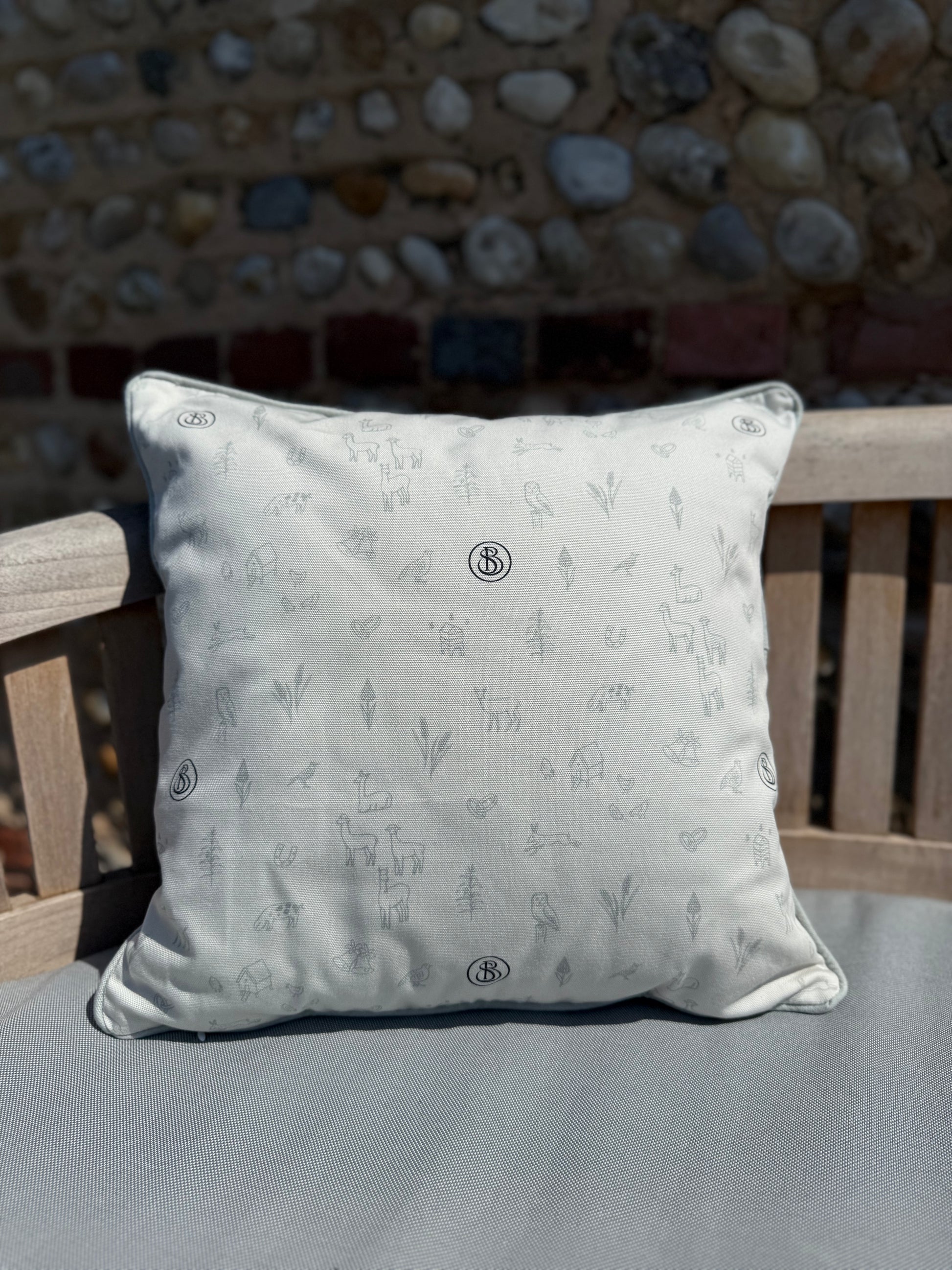 The Southend Pattern Cushion, crafted in the UK from 100% organic cotton, features a locally inspired design reflecting Southend Barns.