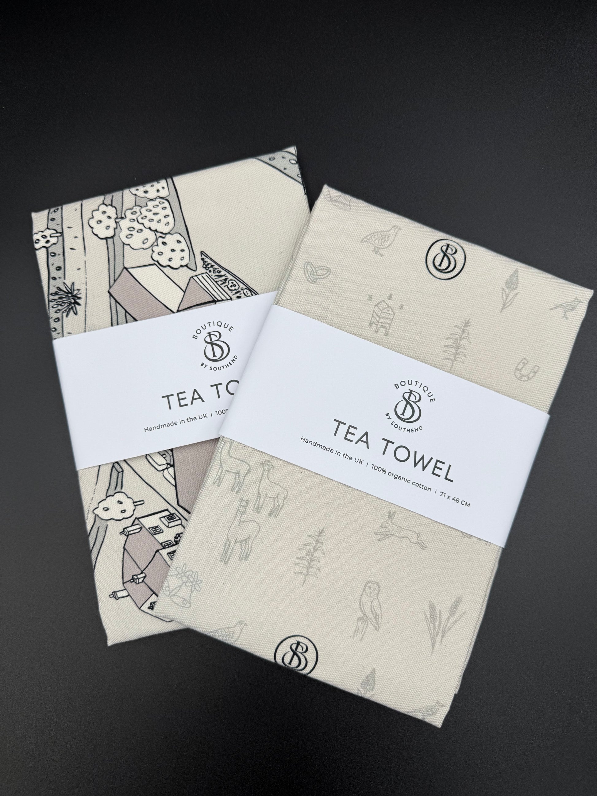 Crafted in the UK from 100% organic cotton, the Southend "Pattern" Tea Towel was created by a local illustrator exclusively for Southend Barns.